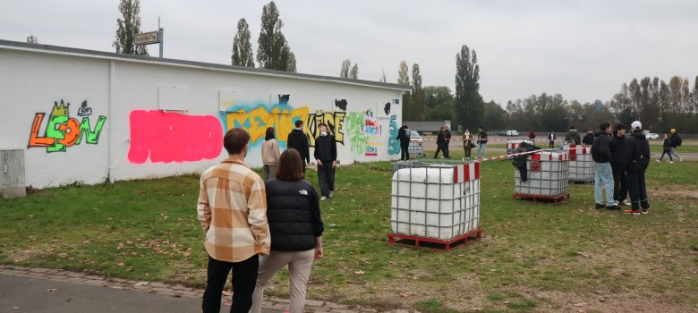 Oberbürgermeister Letz betonte in seiner Eröffnungsansprache die Bedeutung des Projekts für die kreative Entfaltung der Jugendlichen in Bad Kreuznach. Er sei gespannt, wie die Freiflächen bald mit Graffiti gestaltet seien. „Das Projekt ist damit nicht abschlossen, sondern wird ausgebaut. Wir werden prüfen, wo wir weitere Flächen zur Verfügung stellen können“, informierte der OB die Anwesenden, darunter zahlreiche junge Menschen aus der Hip-Hop- und Skaterszene der Stadt. Im Anschluss griffen der Oberbürgermeister und die Projektbeteiligten mit großem Einsatz selbst zur Spraydose und sprühten in bunten Buchstaben die Worte „Legal Walls“ auf eine der Freiflächen.