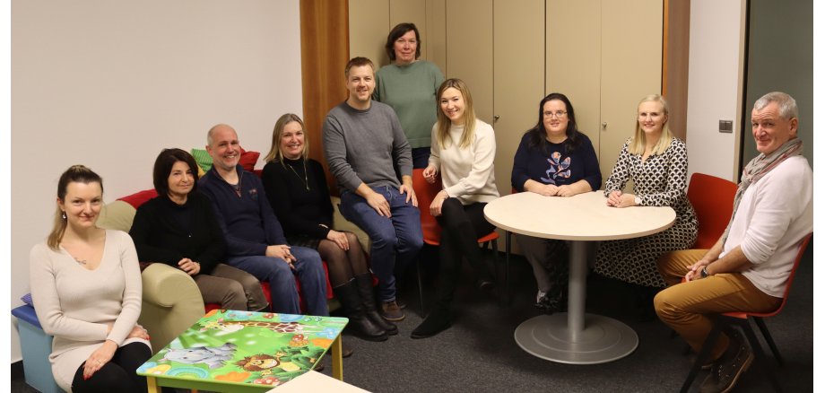 Auf dem Foto von links nach rechts: Marie Winkler (ASD), Heidrun Höfer (PKD), Robert Ploß (ASD), Ingrid Pfeifer-Hoecker (Leitung SD), Christopher Karras (Frühe Hilfen), Eugenia Dmitriew (Familiengerichtshilfe); Nathalie Löwen (UMA); Anna Kos (ASD), Stefan Oberst (Stationäre Jugendhilfe)