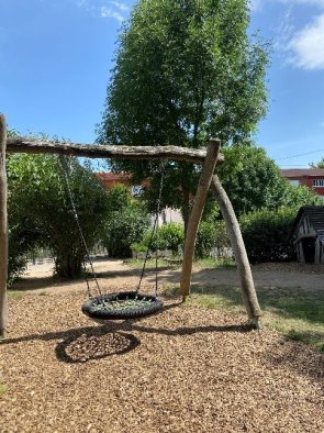 Auch unser Außengelände ist ein wichtiger Lern- und Erlebnisort. Es lädt zum Bewegen, Entdecken und Experimentieren ein. Hier können die Kinder Naturerfahrungen sammeln, ihre Umgebung mit allen Sinnen wahrnehmen und eigene Ideen umsetzen.