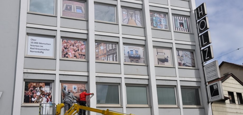 Eine Hausfassade als Fläche für eine Fotoausstellung