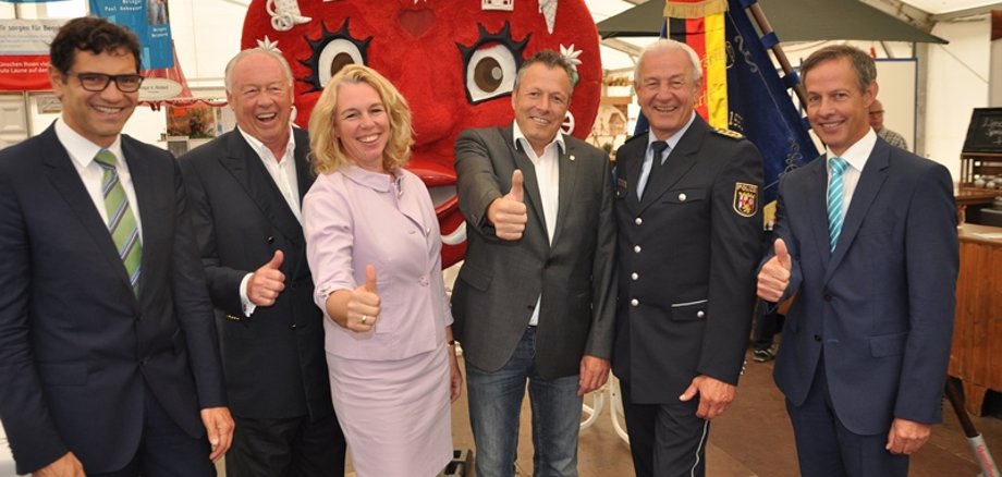 Foto: Der Jahrmarkt ist spitze. Das meinen: Salvatore Barbaro, Klaus Meffert, Dr. Heike Kaster-Meurer, Ralf Leonhard, Jürgen Schmitt und Udo Bausch.