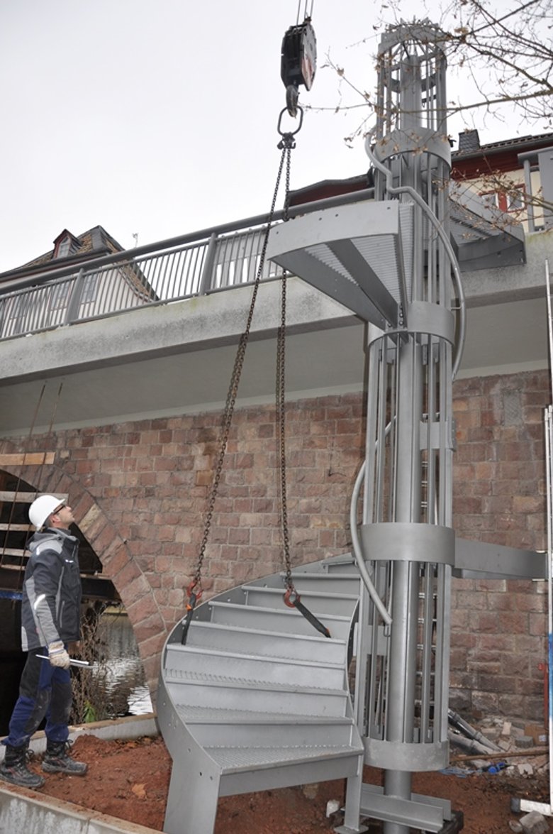 Die Arbeiten an der Treppe sind voraussichtlich bis zum späten Nachmittag abgeschlossen.