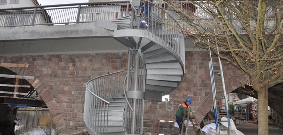 Die Arbeiten an der Treppe sind voraussichtlich bis zum späten Nachmittag abgeschlossen.