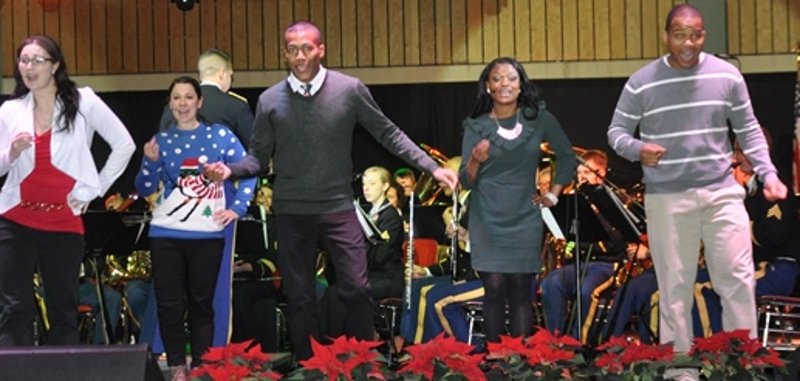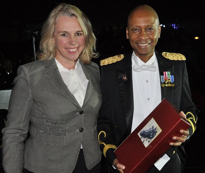 Die Chormitglieder zeigten nicht nur, dass sie stimmgewaltig singen, sondern auch flott tanzen können. Auch Santa Claus gönnte sich auf der Bühne ein Tänzchen. Zu Beginn des Konzertes bedankte sich Oberbürgermeisterin Dr. Heike Kaster-Meurer beim Bandleader, Major Milburn, mit einem Weinpräsent. Mit den vielen Fans freut sie sich schon auf das Weihnachtskonzert 2017. Auch nach dem Abschied der US Army Ende 2001 aus Bad Kreuznach gibt es eine treue Verbundenheit zu den populären Militärmusikern.