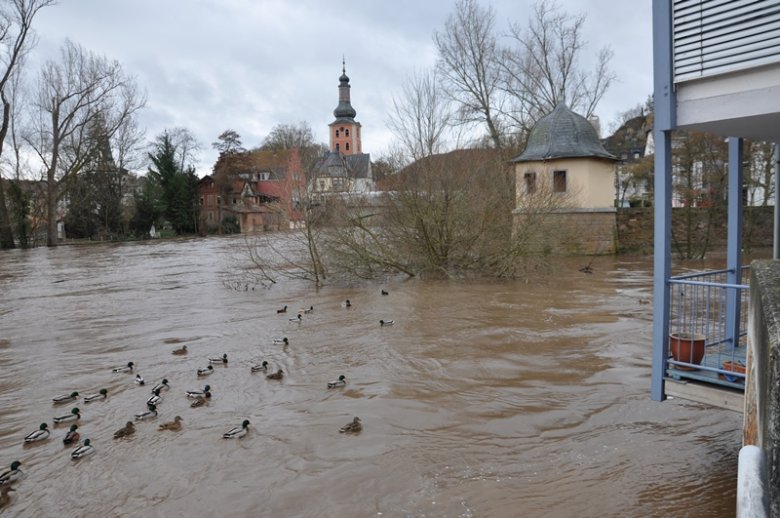 Foto unten. Die Nahe war bedrohlich angeschwollen, der Wasserstand