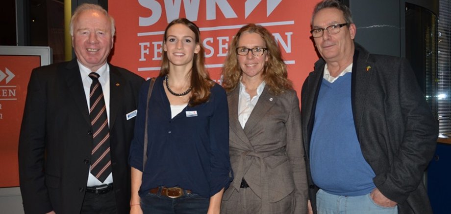 Foto: Gemeinsam mit KSV-Vorsitzendem Alexandre Kegler (rechts) und KSV-Sportwart Walter Senft gehörte Oberbürgermeisterin Dr. Heike Kaster-Meurer zu den ersten Gratulanten von Ricarda Funk im SWR-Funkhaus in Mainz. Foto: privat/senft