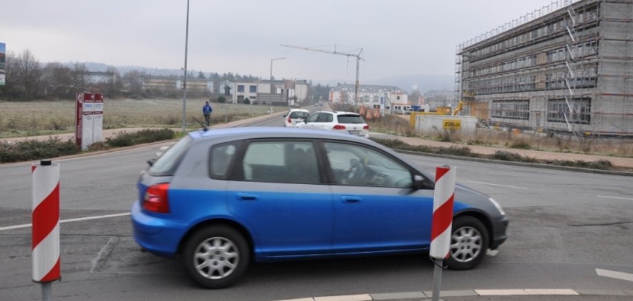 Foto: Im Einmündungsbereich Dürer Straße/John-F--Kennedy-Straße wird ein Verkehrskreisel gebaut.
