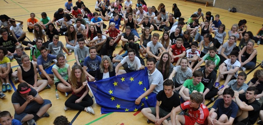 Foto: Inmitten der Schüler Christine Simmich und Matthias Magin