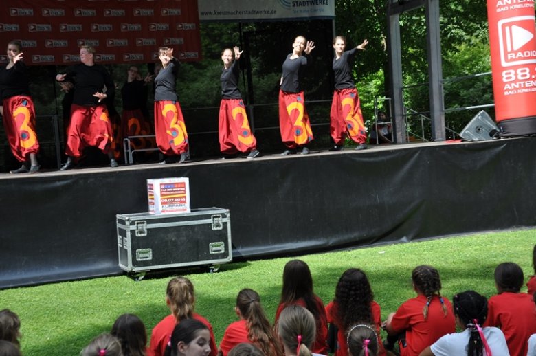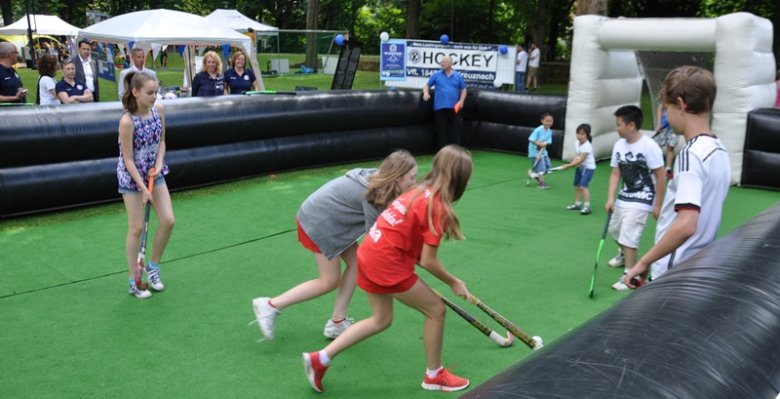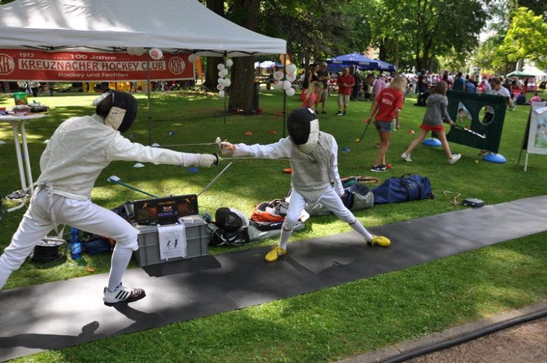 Gemeinsam mit Vertriebsdirektor Jörg Brendel vom Veranstaltungssponsor Sparkasse Rhein-Nahe unternahmen die Oberbürgermeisterin und der Sportsdezernent einen Rundgang. Fußballtorwand, Fechtplanche, Tennisnetz, „Hockey-Airfield“, Trampolin, Baseballtest und vieles mehr animierten zum Mitmachen. Auf der Bühne unterhielten Tanzvorführungen oder Sportdemonstrationen wie „Bruchtest“ von Kampfsportlern. Das Angebot wurde unter anderem von Fitnessstudios und der DAK ergänzt. Beim Kinderschutzbund konnte man sich mit leckeren Fitness-Drinks stärken.