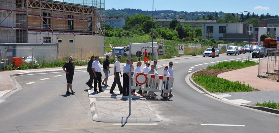 Foto: Symbolische Freigabe des Verkehrskreisels an der Einmündung John.F-Kennedy-Straße/Dürer Straße. l