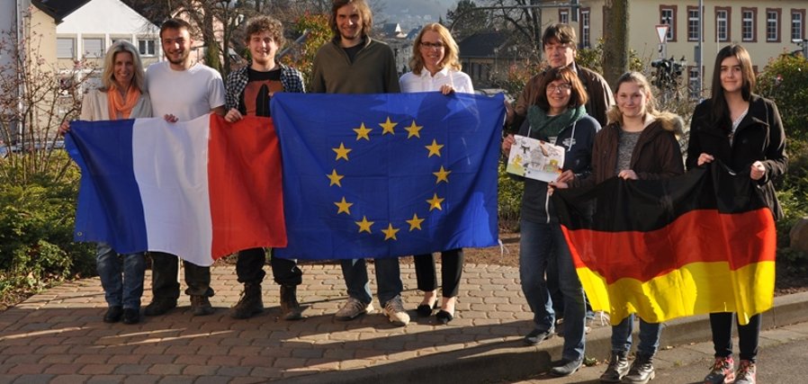Foto: Völkerverbindendes aus Frankreich und Deutschland für Europa: Christine Simmich, Léo Violland, Maxime Teissedre, Hugo Ladaviére, Dr. Heike Kaster-Meurer, Sabine Lang, Oliver Degen, Christiane Kasper, Franziska Frank und Julika Forster (v.l.)