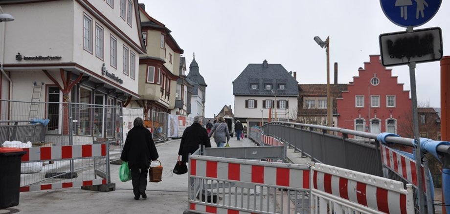 Foto: Die Arbeiten an der Mühlenteichbrücke sollen bis Anfang Juni abgeschlossen sein. Oberbürgermeisterin Dr. Heike Kaster-Meurer plädiert dafür, dass nach der Sanierung die beiden Brücken für den Kfz-Verkehr gesperrt bleiben.