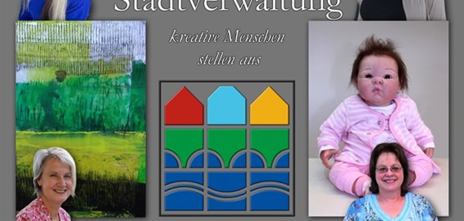 Aus den unterschiedlichsten Bereichen kommen die sechs Hobbykünstler(innen): Jonas Blaesy und Anette Betzer aus dem Sozialamt, Dagmar Knob aus dem Amt für Recht und Ordnung, Ingrid Schulz aus der Abteilung Stadtplanung und Umwelt, Nina Schoof aus der Stadtbibliothek und Eugenia Schön aus der Kita Hermann-Rohloff. Bei den ausgestellten Exponaten handelt es sich um Bilder, mit einer Ausnahme, den sogenannten Rebornbabies, Puppen, die täuschend echt wirken.
