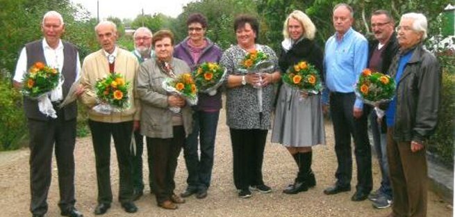Die Geehrten erhielten eine Urkunde des Landesverbandes Rheinlandpfalz und die dazugehörende Ehrennadel überreicht im Auftrag des Landesverbandes durch Klaus Bolz sowie eine Urkunde des Stadtverbandes und die dazugehörende silberne oder goldene Rose: Erich Döhring (KGV am Friedhof, 50 Jahre) Wolfgang Schug (KGV Am Städterpfad, 40 Jahre), Karl Dutz (KGV Im Städterpfad ,40 Jahre), Karlheinz Keller (KGV Am Galgenberg,25 Jahre) und Sabine Winkler (KGV Neue Nordmannsiedlung, 25 Jahre). Glückwünsche gab es auch von Heinz Lüttger 2. Vorsitzender des Stadtverbandes der Kleingärtner und Anette Wietrzychowski , 1.Vorsitzende Kleingartenverein Im Weyroth.