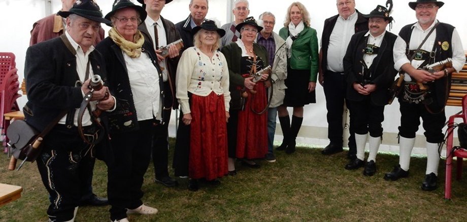 Foto: Die Böllerschützen vom Donnersberg und die Oberbürgergermeisterin gratulierten zum 50. Geburtstag.