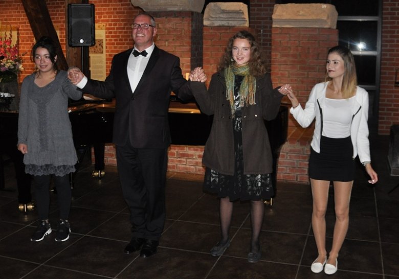 Zum Finale mit einem stehend applaudierenden Publikum bat der große Tenor die drei jungen Musikerinnen nach vorne und verbeugte sich gemeinsam mit ihnen als Dank an begeisterte Kulturinteressierte, die diesen schönen Abend sicherlich so schnell nicht vergessen werden.