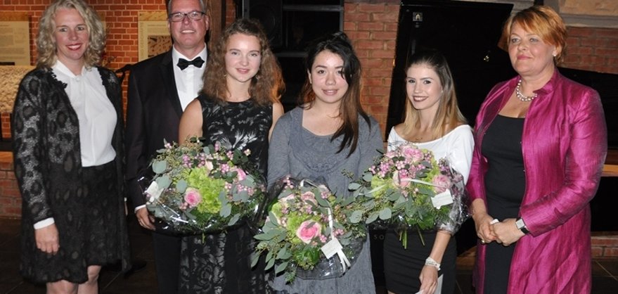 Viel Beifall gab es nicht nur für den Wagner-Tenor sondern auch für die drei Nachwuchspreisträgerinnen. „Es macht einfach Spaß zu sehen und zu hören wie junge Menschen ihren Weg mit der Musik gehen, jede und jeder in seiner ganz eigenen Weise und in verschiedenen Genres und Stilrichtungen“, so die Oberbürgermeisterin. Hervorragende Kostproben ihrer Könnens zeigten die Erste Preisträgerin Maja Sophie Delzeith (17) mit der Oboe (Ausschnitt aus den „12 Fantasien für Oboe Solo“ von Telemann und Ausschnitt aus Benjamins Brittens „Six metamorphoses after Ovid für Oboe Solo“) und die beiden Zweiten Preisträgerinnen Eva Ender (17), Gesang, mit „Hallelujah“ von Leonhard Cohen und „Stonecold“ von Demi Levato. Die Pianistin Julia Wöllstein (14), Tochter des Pianistenehepaares Yuki Nagatsuka und Gerhard Wöllstein, begleitete Stefan Vinke bei Robert Schumanns „Mondnacht“ und spielte außerdem Frederic Chopins „Fantasie-Impromptu cis-moll op. 66“.