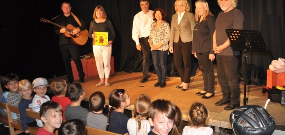 Gespielt und besungen wurden dabei Szenen aus den Geschichten ihrer Bücher. Begleitet wurde Julia Donaldson auf der Gitarre von ihrem Ehemann Malcolm und im Schauspiel von Markus Dorner sowie Günter und Uta Weißkopf (Brieffreundin der Autorin). Die Moderation hatte die Berliner Hörbuch-Sprecherin Ilona Schulz.
