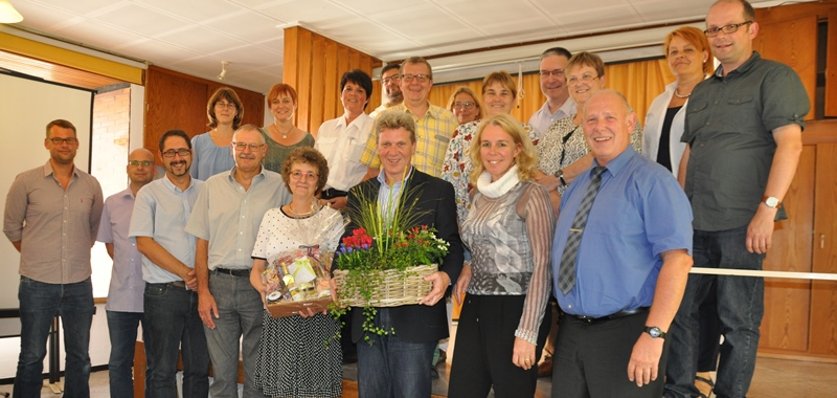 Foto: Im Beisein von Oberbürgermeisterin Dr. Heike Kaster-Meurer und vielen Kolleginnen und Kollegen wurde Doris Kunz (5.v.l.) von Klaus Christ (3.v.r.) verabschiedet.