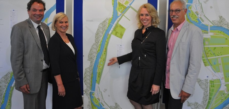 Foto: Das Bad Kreuznacher Präsentationsteam in Mainz: Dr. Michael Vesper, GuT-Geschäftsführer, Gisela Stötzer (Planungsbüro),OB Dr. Heike Kaster-Meurer und Thomas Fischer (Stadtverwaltung). Foto: Hansjörg Rehbein