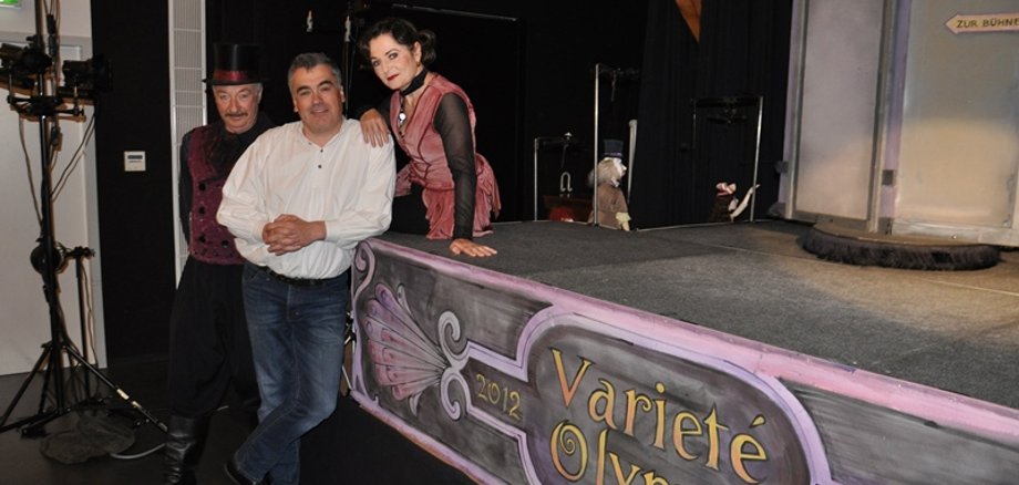 Von seinen Geschenken teilte Markus Dorner gerne eins mit seinen Gästen. Johanna und Harald Sperlich vom Hohenloher Figurentheater zeigten einen Ausschnitt ihres Stückes „Varieté-Olymp“. Sich selbst schenkte Markus Dorner zwei Gastspiele, mit der Europäischen Marionettengala in Prag und in Salzburg. Am Freitag wurde noch ein Geburtstag gefeiert. Zum 60. Geburtstag überreichte Markus Dorner der ehrenamtlichen Betreiberin des PuK-Cafés, Helga Heblich, einen Strauß Blumen.