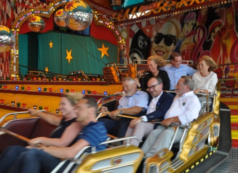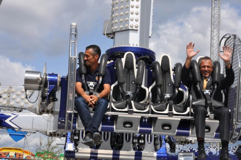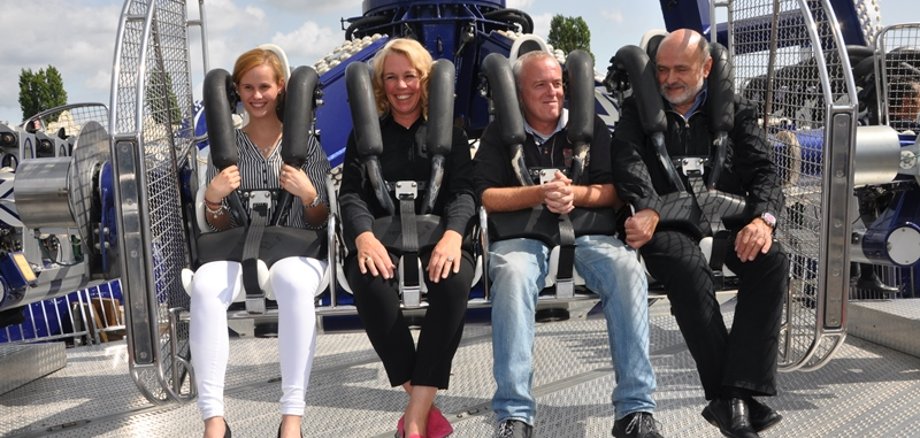 Nach der Stärkung am Buffet ging es zum Fahrgeschäfts-Rundgang, der nach rasanten Runden in der Höhe (King), in der Kurve (Musikexpress), ein wenig Spuk in der Geisterbahn mit einer gemütlichen Riesenrad-Runde und einem traumhaften Blick auf das Festgelände und auf die Stadt ausklang.