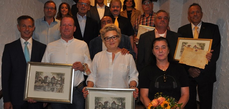 Foto: Udo Bausch (vorne links) mit Alexander Schreiber, Mario und Katharina Roscher, Dominik Bügler, Lore Loritz und Ralf Leonhard (rechts).