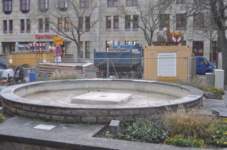 Ungewohntes Bild: Ein Kornmarktbrunnen ohne die Stadtoriginale.