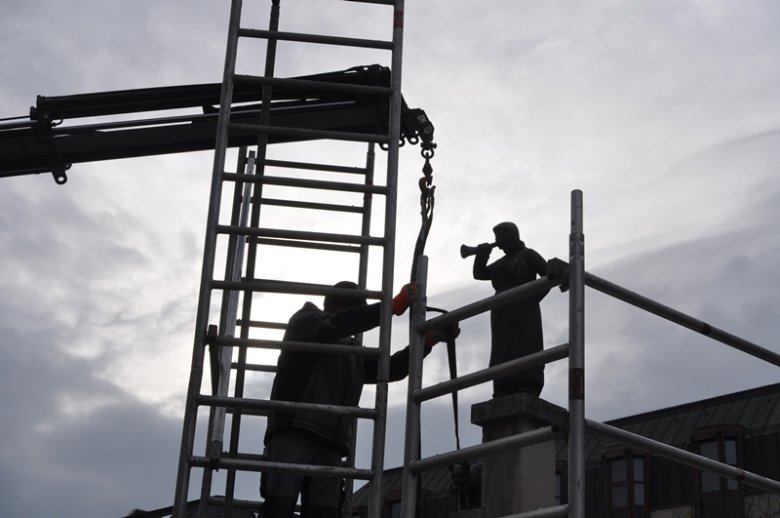 Schutz Wiechert passt auf: Die Sockel wurden abgefräst und mit den Figuren abtransportiert