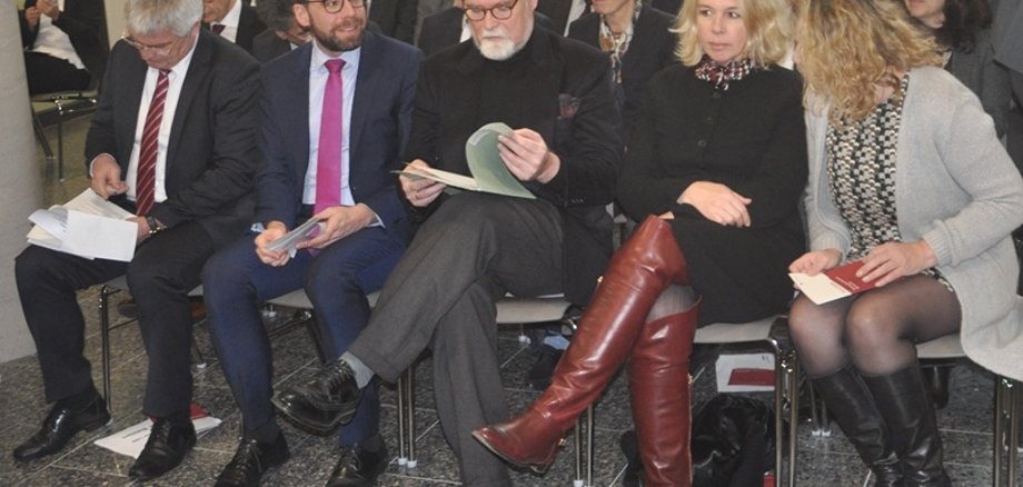 Justizminister Herbert Mertin ging in seinem Grußwort auch auf die Bürgernähe ein, die ein gemeinsames Justizzentrum bedeutet: „Mit diesem Justizzentrum ist es erstmals seit vielen Jahren gelungen, alle Bad Kreuznacher Justizbehörden an einem Ort, in einem gemeinsamen Dienstgebäude unterzubringen. Dass dies zahlreiche Vorteile für die Justiz hat, liegt auf der Hand. Arbeitswege werden verkürzt, die interne und externe Kommunikation beschleunigt und natürlich können in Verwaltung und Organisation die vielbeschworenen Synergieeffekte genutzt werden. Darüber hinaus ist ein gemeinsamer Justizstandort auch ein Beitrag zu mehr Bürgernähe. Schließlich haben die Bürgerinnen und Bürger dadurch in all ihren Anliegen nun eine zentrale Anlaufstelle. Besonders zu erwähnen sind hier der neu geschaffene Infothekenbereich und moderne Informationsmöglichkeiten für die Besucherinnen und Besucher. Dass das Gebäude komplett barrierefrei erschlossen ist und auf die Belange von Geh- und Sehbehinderten sowie Hörgeschädigten gleichermaßen eingerichtet ist, ist ein weiterer Nachweis der Bürgerfreundlichkeit.“