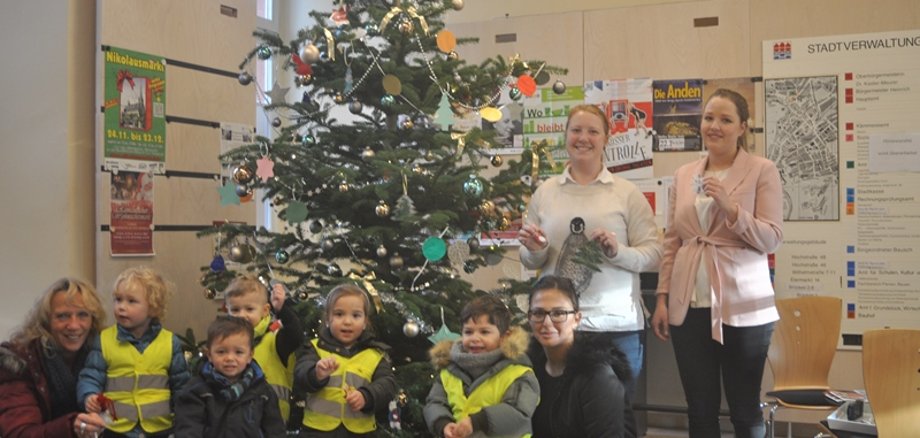 tatkräftige Unterstützung. Eigens für den Baum im Stadthaus wurde in der
