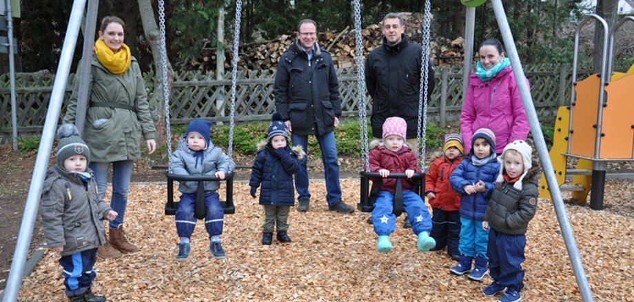 Rund 2800 Euro kosteten die beiden Schaukel, der Fallschutz aus Holzhackschnitzeln und die neue Umfassung des Spielgerätebereichs. Die Erzieherinnen Tina Fleck (Foto links) und Stephanie Gagliano waren mit ihren Krippenkindern nicht zum letzten Mal auf dem Spielplatz in der Bergstraße. Denn der Weg von der Kita zum Spielplatz ist auch ein schöner Spaziergang durch den Stadtteil.