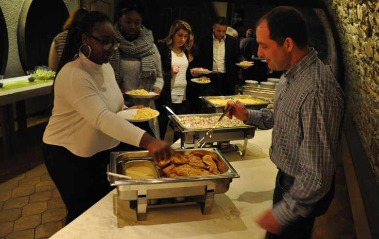 Die städtische „Meisterköchin“ Silvia Wiede zauberte für die rund 50 Gäste ein schmackhaftes Essen: Hühnchen mit Currysauce, Reis, Nudeln, Chinakohlsalat, Spinatlasagne und als Nachtisch Apfeltiramisu. „Bad Kreuznach ist international gut aufgestellt“, sagte Beigeordneter Bausch auch mit Blick in die Runde. Menschen aus über 150 Nationen leben in der Stadt mit ihren knapp 51.000 Einwohnern. „Danke für Ihr Engagement“, sagte er zu jenen Repräsentanten von rund 50 Organisationen, die sich im vergangenen Jahr an der Programmgestaltung und an dem Eröffnungsfest der Interkulturellen Wochen beteiligt haben.