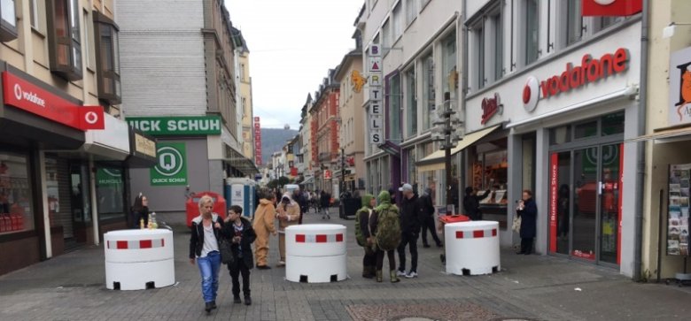 Die Zufahrten zum Narrenkäfig waren mit schweren Betonteilen gesichert.