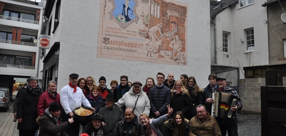 „Ohne Worscht und ohne Wein, geht e echtes Gässje ein“, animierte der Haus- und Hofmusiker der Gastbässjer, Hans-Jürgen Kurz, mit seinem Akkordeon zum Schunkeln an. Zum Abschluss servierte Koch Franz-Xaver Bürkle noch eine leckere „Bastgassenpfanne“ , die sich die Bastgässjer mit ihren Gästen munden ließen.