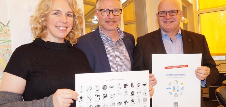 Foto: Aufsichtsratsvorsitzende Dr. Heike Kaster-Meurer, Michael Heinze, wissenschaftlicher Mitarbeiter der Bergischen Universität Wuppertal und Gewobau-Geschäftsführer Karl-Heinz Seeger wollen Nachbarschaftshilfe im Quartier Süd-Ost strukturieren.