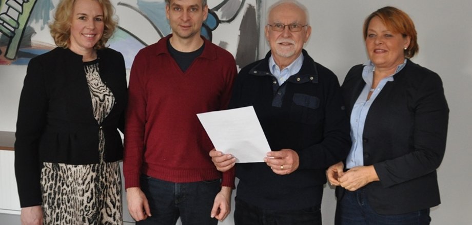 Foto: Oberbürgermeisterin Dr. Heike Kaster-Meurer und Amtsleiterin Grit Gigga nach Vertragsunterzeichnung mit Helmut Roos und Marc Kluschat , Leiter der Musikschule Mittlere Nahe, (2.v.l.).