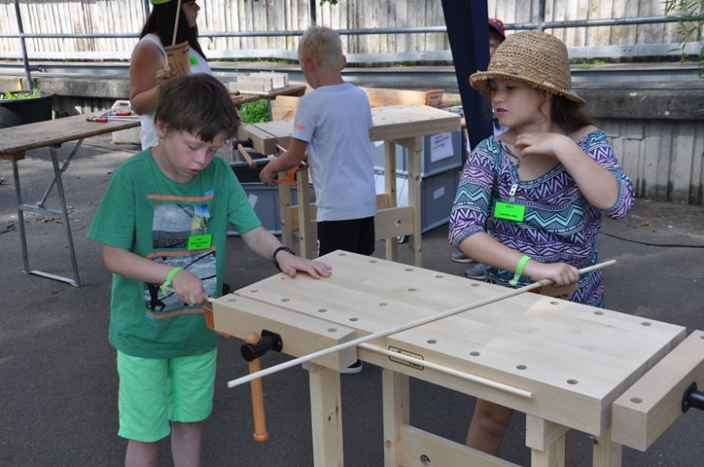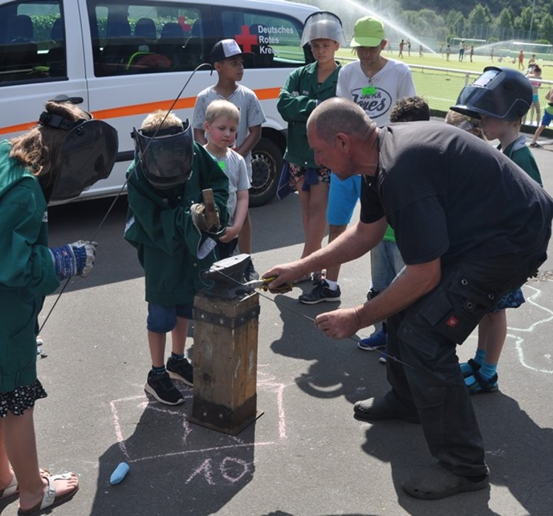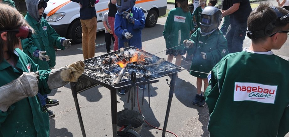 Foto oben: Metallkünstler Joachim Harbut hat seine „Zauberschmiede“ ins Kinderdorf Salinental mitgebracht.