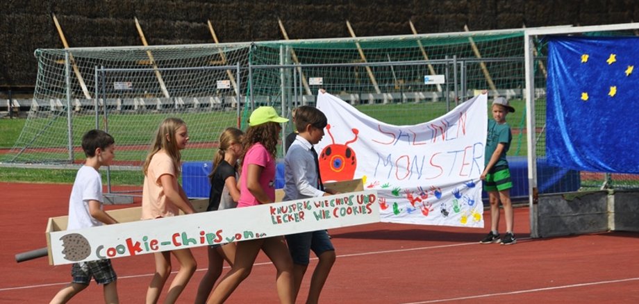 Rund 13.000 Kinder kamen seit 1952 in den Genuss einer abwechslungsreichen Ferienbetreuung. Diese Zahl ist gesichert, die anderen Zahlen in der Bilanz schätzte die Leiterin des Amtes für Kinder und Jugend, Sabine Raab-Zell, bei ihrer Begrüßung eher scherzhaft: 221 Wespenstiche wurden behandelt, 3817 Pflaster verklebt und 743 Liter Farbe vermalt. Die 657 Kuchen, die Eltern gebacken haben, sind sicherlich nicht zu hoch geschätzt. Denn auch in diesem Jahr wurden für das Buffet reichlich Obst, Salate und Süßes gespendet. Innerhalb einer Stunde waren 10 Kilo Zuckerwatte verputzt. Der Dank dafür gilt Ralf Leonhard, Vorsitzender des Bad Kreuznacher Schaustellerverbandes, der kurzfristig noch eine Zuckerbäckerin organisierte. Sabine Raab-Zell bedankte sich zudem bei den engagierten Betreuerinnen und Betreuern um das Leitungsteam Judith Paul, Adrian Kaul und Sarah Schlitz und nicht zuletzt den Kindern, „die jedes Kinderdorf zu einem ganz besonderes Erlebnis für alle machen.“ Am Freitag geht die Ferienbetreuung im Salinental zu Ende. Was bleibt ist das große Monster mit vielen kleinen, die der Armsheimer Metallkünstler Joachim Harbut mit den Kindern in seiner „Zauberschmiede“ gefertigt hat. Das Kunstwerk wird noch ausgestellt.