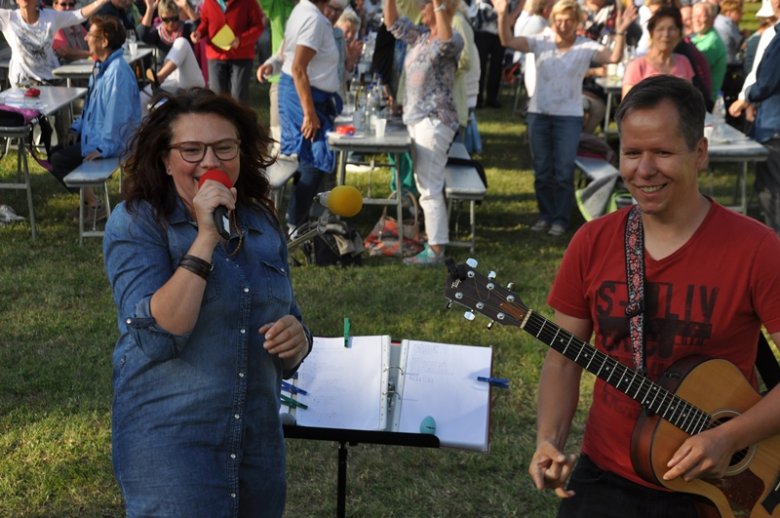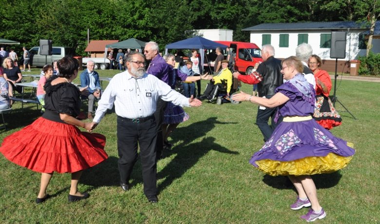 Beste Noten des Publikums verdiente sich auch das Programm: Die Square Dancer der Bridgehouse Twirlers wirbelten, geführt von ihrem Caller Hans Joachim Hammer, gekonnt über den holprigen Rasen, das Duo „Anna and me“ (Anke Schröter/Alex Schmeisser) begeisterte mit kräftigem Soul in der Stimme und feinen Riffs auf der Gitarre. Die Musikfreunde Winzenheim bewiesen, welch großes Repertoire sie beherrschen und DJ „ED Stone“ (Edgar Döll) unterhielt das Publikum in den Pausen mit einem bunt gemixten Programm.