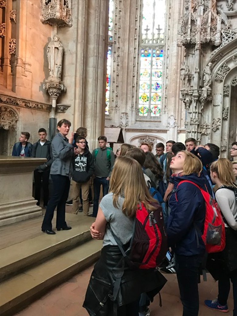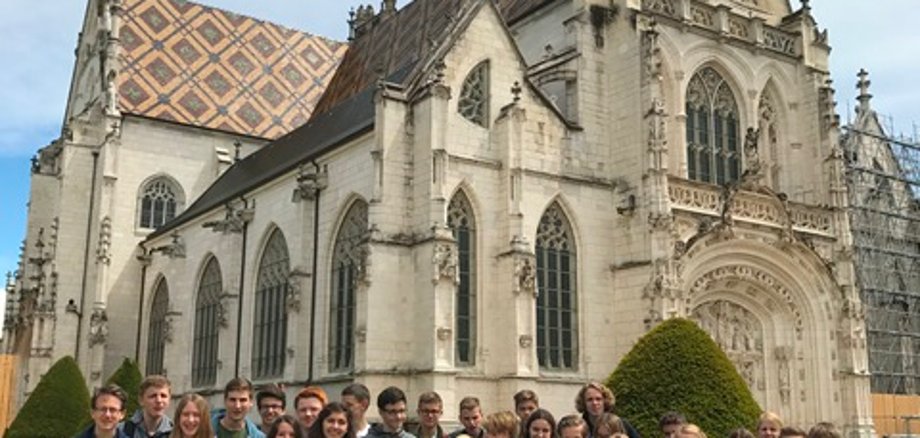Das Kennenlernen der Partnerstadt sowie seiner besonderen Attraktion, der Église und des Monastère du Brou, war unter der charmanten Führung von Edith Mouton ein echtes Vergnügen. Erstaunt stellten die Schüler fest, dass dieses einzigartige Bauwerk nie eine Kirche im eigentlichen Sinne war, sondern von Marguerite d’Autriche zum Andenken an ihren allzu früh verstorbenen und dort bestatteten geliebten Gatten Philibert le Beau in Auftrag gegeben wurde. Wie stark muss Liebe sein, wenn man ein solches Bauwerk dafür errichtet!