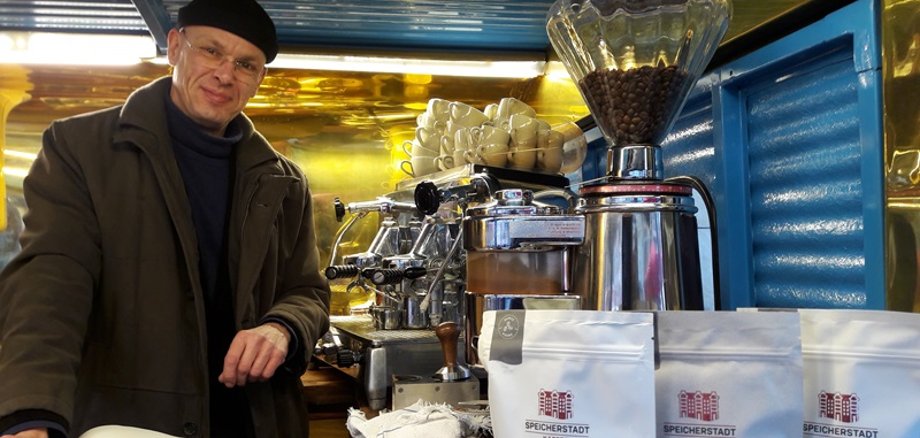 Nach sechs Jahren Arbeitslosigkeit hat der Bauzeichner 2014 den Sprung in die Selbständigkeit gewagt. Seine erste Idee, eine Suppenküche, scheiterte trotz erfolgreichem Probekochen („meine Frikadellen schmecken 1a“) an den Investitionskosten. Mit finanzieller Unterstützung seiner Mutter kaufte er sich den Citroen HY und baute dort eine Küche und einen Wassertank ein. Herzstück ist die Kaffeemaschine Faema e61, Bj 1967. Seinen Kaffee bezieht er aus der Hamburger Speicherstadt, den „besten, den ich selbst getestet habe“.