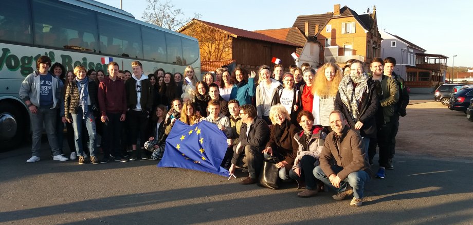 Wie es dann mit der Verständigung wirklich klappt, darüber kann man sich im Bus noch Gedanken machen und das nötige Standartvokabular nochmal wiederholen, bietet Herr Stephan Brunner an, der mit Frau Eva Recknagel, Frau Ildikó Huck und Frau Simone Ilg die Gruppe betreut und begleitet. Ob aus der extra Lektion Intensiv-Französisch etwas wird bezweifeln einige Eltern und befürchten, dass ihre Kinder mehr mit ihren Handys beschäftigt sind.