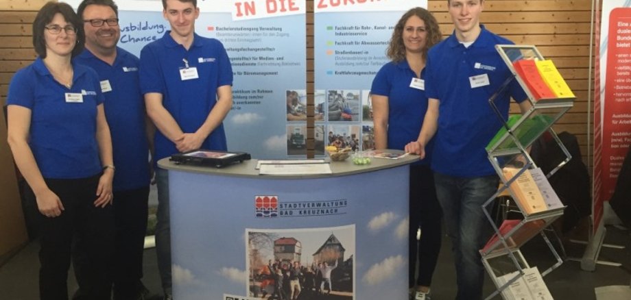 Foto: Am neuen Messestand der Personalabteilung: Christiane Göller-Jungbluth, Volker Röser, Patrick Stempel, Tatjana Schwinn, und Jonas Lamb)