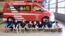 Die Kreuznacher Flämmchen, Nachwuchs der freiwilligen Feuerwehr, haben Insektenhotels gebastelt. Die