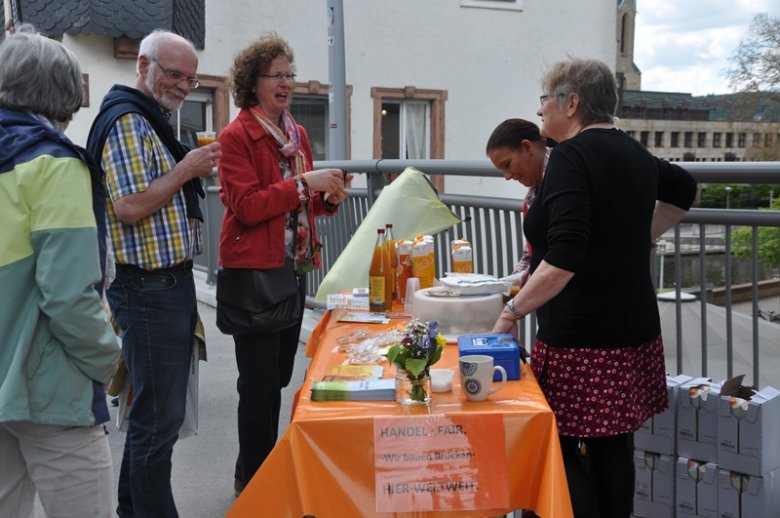 Das Band für die offizielle Freigabe schnitt Monika Schneider ein zweites Mal in ihrem Leben durch. Als kleines Mädchen vor 61 Jahren war sie bei der Einweihung der damaligen Spannbetonbrücke dabei, die 1955/56 neu errichtet wurde. Als kleine Assistentin half dieses Mal Käthe Kappaun. Ob Käthe in 60 Jahren wieder ein Band durchschneidet? Daran dachte wohl so manch einer in der gut gelaunten Festgemeinde, die anschließend von der Brücke bis zum Eiermarkt und wieder zurück flanierte, um sich am bunten Programm des Brückenfestes zu erfreuen. Froh gestimmt ist auch Oberbürgermeisterin Dr. Heike Kaster-Meurer. „Wir wollen durch den Brückenschlag die Menschen von der Innenstadt in die Neustadt leiten.“