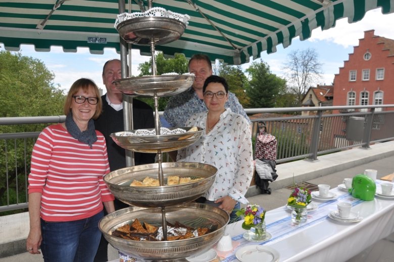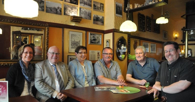 Steffen Kaul (3.v.r.) mit Käuzchenwirt Bernd Reichard (2.v.r.), Martina Betz (links) Heinz-Wolfgang und Monika Schneider sowie Schwiegersohn Alex Betz (rechts).