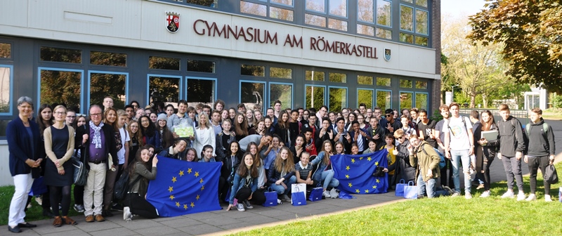 Auch über den Förderverein Städtepartnerschaften und internationale Beziehungen, deren Vorsitzende Christine Simmich ist, werden mittlerweile Austauschprojekte gefördert. Kürzlich verabschiedete die städtische Koordinatorin eine holländische Delegation der Partnerschule des Gymnasiums am Römerkastell, die Wolfert van Borselen International School of Rotterdam, mit Geschenken für die 51 Schülerinnen und Schüler sowie für vier Lehrer(innen). Für die Betreuung der Gäste war Englisch-Lehrer Matthias Magin verantwortlich.