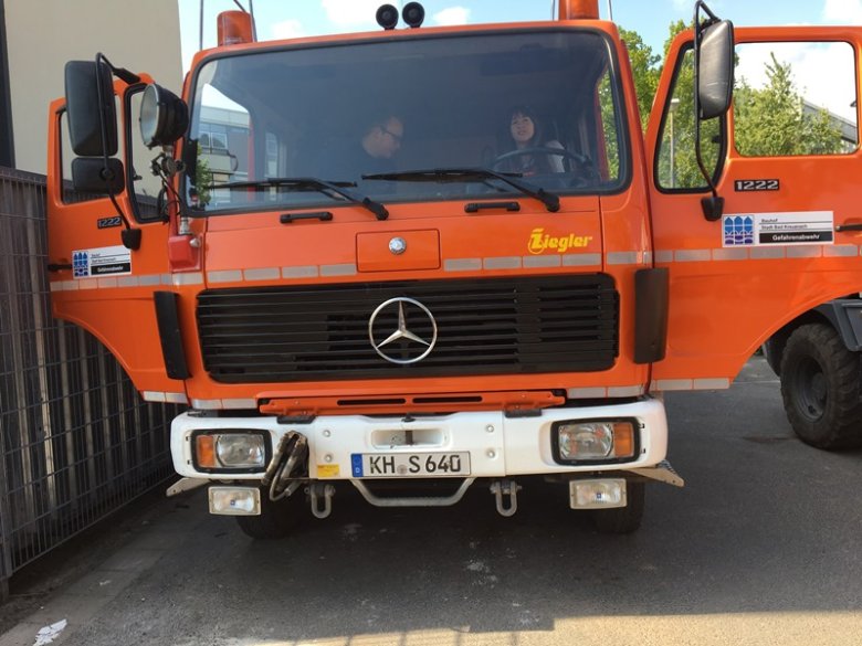 Der Bauhof der Stadt Bad Kreuznach mit den Bereichen Straßenunterhaltung und Abfallbeseitigung/Straßenreinigung waren gerne bereit, die Mädchen beim Girls‘Day mit der täglichen Arbeit des Bauhofes vertraut zu machen. Die beiden Mädchen Charlotte und Emelie konnten den Bereich Hochwasserschutz und Straßenreinigung kennenlernen. Dreck und achtlos weggeworfener Müll müssen beseitigt und Straßen und Parkplätze gereinigt werden. Dafür stehen dem Bauhof unterschiedliche Möglichkeiten zur Verfügung. Neben den modernen, auf neuste Sicherheits- und technische Standards ausgestatteten Straßenmaschinen kommen auch funktionale Gehwegkehrmaschinen zum Einsatz, um das Stadtbild unserer schönen Kurstadt attraktiv zu halten. Die Fahrt mit der Kehrmaschine fanden die Mädchen sehr interessant. Außerdem bekamen sie noch etwas zum Thema Hochwasserschutz im Stadtgebiet erklärt.