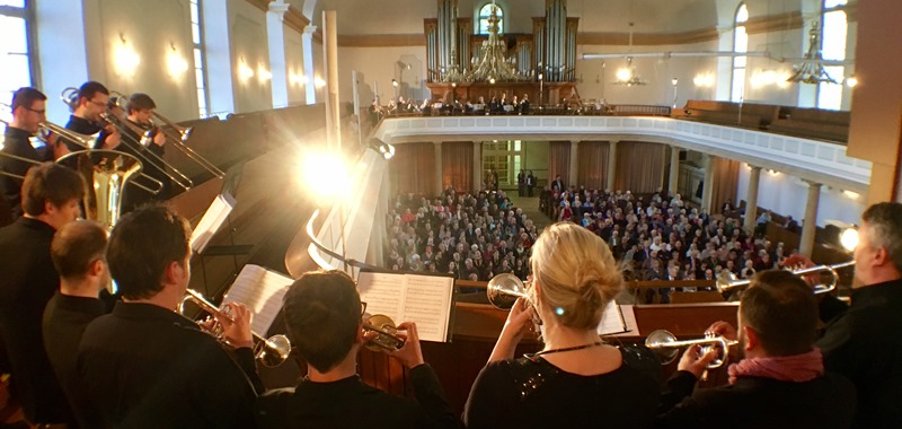 Musiker(innen) der Ensembles der drei rheinland-pfälzischen Landeskirchen spielten gemeinsam unter der wechselnen Leitung ihrer Dirigenten Christian Syperek (Pfalz), Johannes Kunkel (Hessen und Nassau) und Jörg Häusler (Rheinland). Ihre Darbietung wurde ebenso begeistert beklatscht wie das Orgelspiel der Bad Kreuznacher Regionalkantorin Cindy Rinck. Im Mittelpunkt des Konzertes stand die Uraufführung der Auftragskomposition des Festivals von Professor Stefan Mey aus Hannover. Diese setzt sich mit der Musik zur Zeit Luthers auseinander.